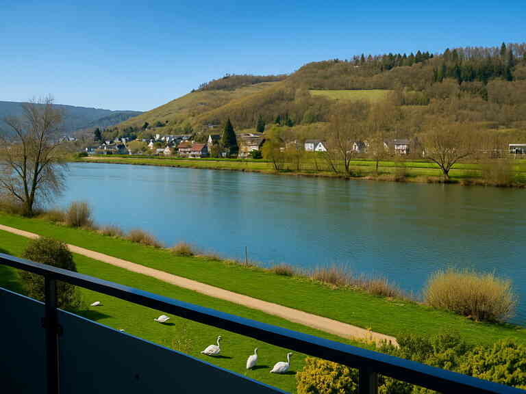 Fra balkonen i lejligheden på 1. sal kan du nyde den pragtfulde udsigt over Moselfloden.