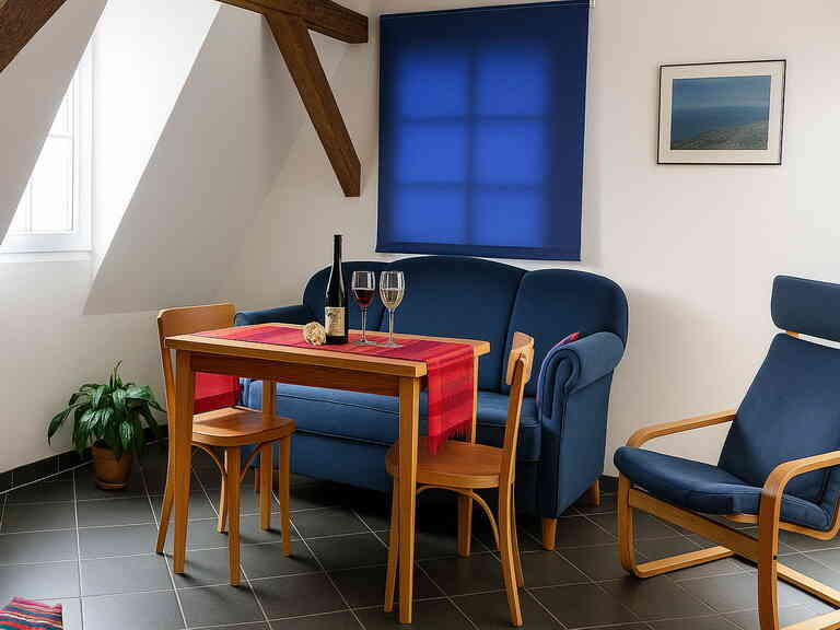 Lejligheden ligger på anden sal og har balkon med udsigt til Moselfloden. Her får du den helt rigtige stemning!
