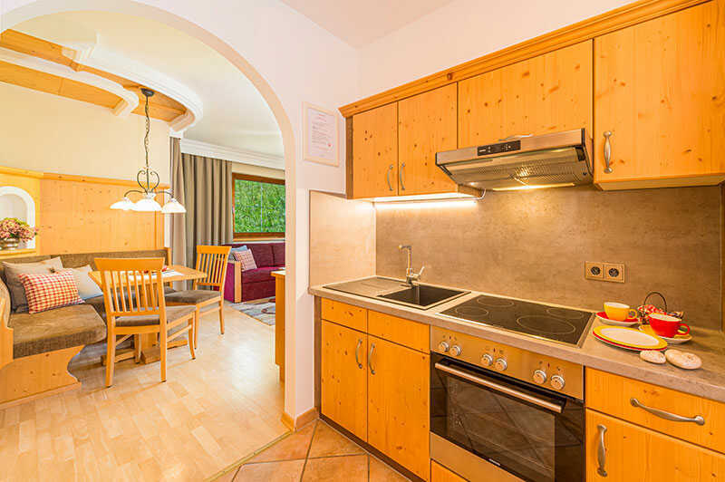 Den 2-værelses ferielejlighed ligger i et apartmenthus i et roligt område og alligevel centralt. Til fods er du på ca. 10 minutter i byen med butikker og hyggelige tyroler-restauranter.