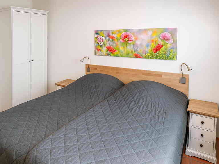 Lejligheden ligger på 1. sal og er over to niveauer. Adgang til det ene soveværelse sker ad en lidt stejl trappe fra entréen. Beliggenheden ved storskoven Hochwald er den bedste i Hahnenklee.