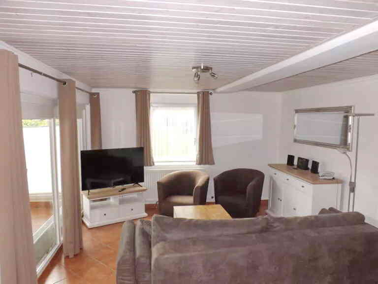 Stor, moderne 4-værelses lejlighed i stueetagen på ca. 80 m² til 2-5 personer. Der er egen indgang, 3 soveværelser, stor stue-køkken, bad/toilet, vinterhave og stor terrasse mod syd.